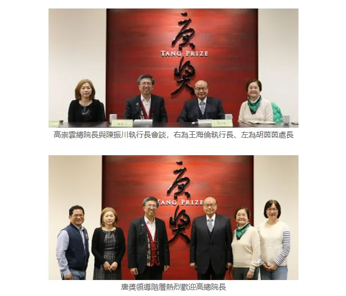 高總院長與陳執行長座談時,強調尹博士的創舉與唐獎的成就不僅為中華民國增添光彩,也為全球華人開拓了更光明的坦途,從而促進了中華文化的偉大復興!尤其是漢學和法治兩項大獎,必將對人類社會有巨大的貢獻!高總院長與陳執行長會談一小時,雙方相談甚歡,在推廣文化學術合作與國際連結方面深入交換意見,獲得共識認為此項交流不僅有利於傳統文化的宣揚,更可以促進及提升全球華人的地位與價值!