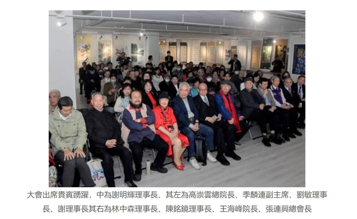 中華文化藝術總院院長、中華學術文教基金會董事長高崇雲講座教授於3月3日上午9時30分出席在台北市客家主題公園藝文中心由中華詩詞藝術協會所主辦的兩岸詩詞書畫名家邀請展。當天冠蓋雲集、嘉賓滿堂、由中華詩詞藝術協會謝明輝理事長主辦、唐雲明教授主持,包括中國國民黨季麟連副主席、海基會林中森前董事長等貴賓以及各個書畫社團的理事長、書畫家約百餘人參與,共襄盛舉。大會場面熱烈,氛圍溫馨。謝明輝理事長致歡迎詞之後又和主持人唐雲明教授共同吟唱本身的作品,獲得全場一致的讚賞!